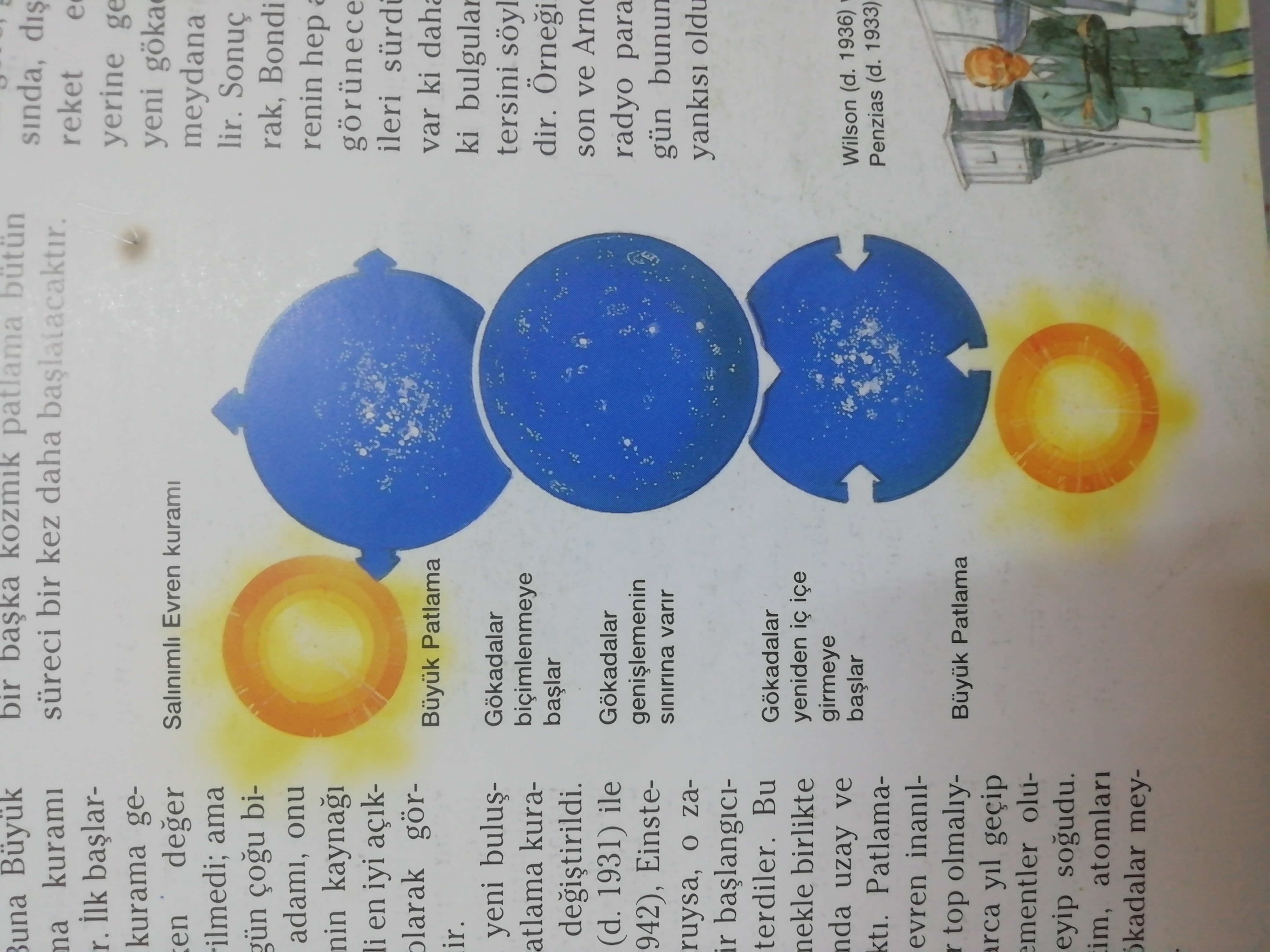 Uzayda yeni buluşlar yapıldıkça, Büyük Patlama kuramı daha da geliştirilip değiştirildi. 1970’de Roger Penrose (d. 1931) ile Stephen Hawking (d. 1942) , Einstein’ın kuramı eğer doğruysa, o zaman evrenin de belli bir başlangıcının olabileceğini gösterdiler. Bu durumda, tuhaf görünmekle birlikte bizim bildiğimiz anlamda uzay ve zaman var olmayacaktı. Patlamadan sonraki anlarda, evren inanılmaz derecede sıcak bir top olmalıydı. Ardından, milyonlarca yıl geçip hidrojen ve öteki elementler oluşuncaya kadar genişleyip soğudu. En sonunda da çekim, atomları bir araya topladı ve gökadalar meydana gelmeye başladı.