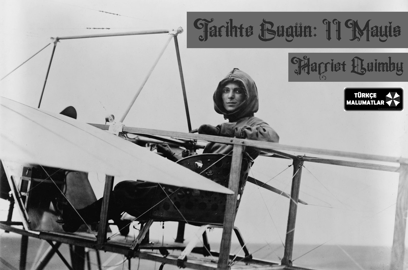 - Harriet Quimby doğdu. Kendisi, Amerikalı havacı, Manş Denizi’nde uçan ilk kadın pilot. Lisanslı pilot olan ilk Amerikalı kadın olmasına rağmen, pilot olarak kariyeri sadece 11 ay sürdü. 16 Nisan 1912’de Louis Blériot tarafından kendisine ödünç verilen 50 beygirlik bir tek kanatlı uçakla İngiltere’den ayrıldı. Daha önce hiç uçmadığı bir uçakla ve kullanmayı yeni öğrendiği bir pusulayla Fransa’ya doğru yola çıktı. Zayıf görüş ve sise rağmen, Quimby 59 dakika sonra Fransa’nın Hardelot kenti yakınlarında indi. İniş yaptıktan sonra, yerel sakinler tarafından karşılandı, ancak Titanik sadece birkaç gün önce battı ve Quimby’nin başarısının dünya basınında sınırlı bir şekilde rapor edilmesiyle sonuçlandı. Aynı yıl, 1 Temmuz 1912’de, Quincy, Mass yakınlarındaki bir uçuş sergisinde uçağının kontrolünü kaybettiğinde öldü. (11 Mayıs 1875 yılı)