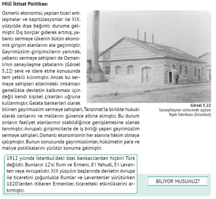 1912 yılında İstanbul’daki özel bankacılardan hiçbiri Türk değildir. Bunların 12’si Rum ve Ermeni, 8’i Yahudi, 5’i Levanten veya Avrupalıdır. XIX yüzyılın başlarında devletin Avrupa ile ticaretini çoğunlukla Rumlar ve Levantenler yürütürken 1820’lerden itibaren Ermeniler, ticaretteki etkinliklerini artırmıştır.