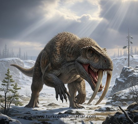 - Korkutucu Kılıç Dişler: Diğer gorgonopsidlerde olduğu gibi, Inostrancevia’nın da üst çenesinden aşağı doğru uzanan, keskin ve bıçak gibi büyük kılıç dişleri (saber-teeth) vardı. Bu dişler, avlarını tek bir güçlü ısırıkla etkisiz hale getirmek için tasarlanmıştı.