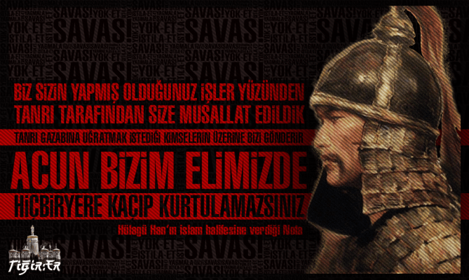 Tengrici Türklerin katli vaciptir diyen abbasi halifesini büyük bir ölüm beklemektedir. Halife Hülagü’yü kışkırtmakta ve seni yerde parçalarım, kimse bize dokanamaz, biz Allah’ın ordusuyuz demektedir. Hülagü’nün ise bu kibir dolu mektuplara tek bir cevabı olmuştur. “Geleceği sadece Tengri bilir”.