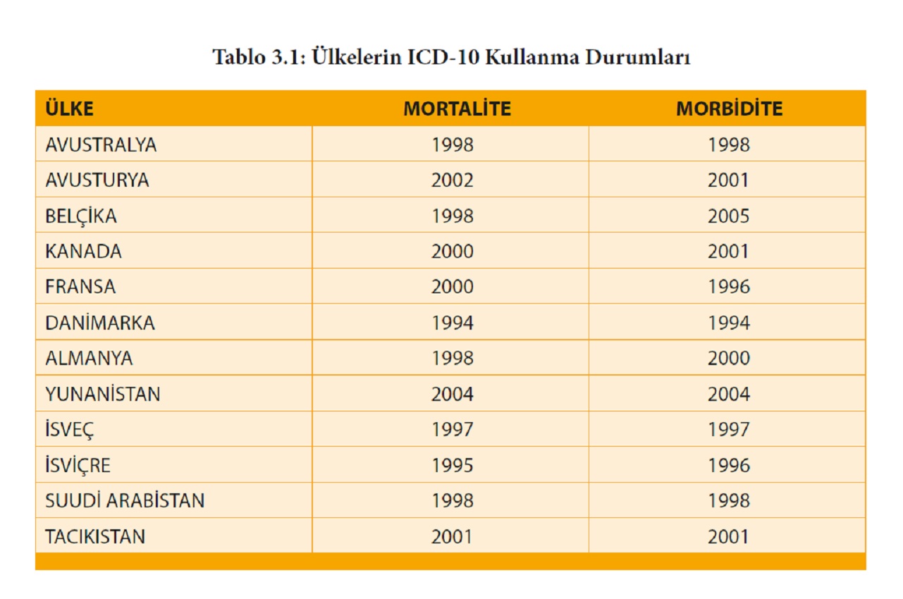 1 Temmuz 2005 tarihi itibarıyla sağlık kuruluşlarında ICD-10’un kullanımı zorunlu hâle getirilmiştir.